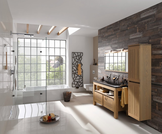 Plastic baths look, well, okay... but bathing in them is just not the same feeling you get when luxuriating in an enamelled steel bath. Kaldewei has produced its own, fully recyclable steel enamel since 1932. As a pioneer and style icon of bathroom culture, Kaldewei manufactures baths, shower trays and floor-level shower surfaces from eco-friendly Kaldewei steel enamel. Here are a couple of dream bathrooms with Kaldewei enamelled steel baths and shower trays – very zen! You can buy or order in Australia through Bathe. Oh, and check out that angular towel rack in the image below. What a neat idea!
