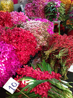 | The Bangkok flower markets are filled with local blooms such as jasmine, chrysanthemum, gerbera, orchid, lily and rose. Photographs by Susan Redman. |
