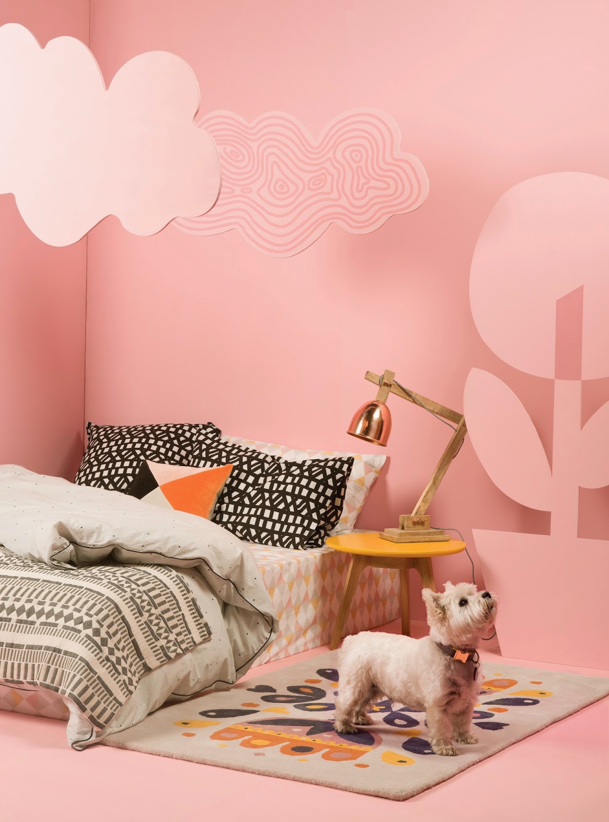 When the weekend weather starts to chill, there is nothing like a good sleep-in. To ensure a well-deserved catch up on rest and relaxation is the success you dream of, equip your bedroom with creature comforts. Some essential must-haves include a soft rug, luxury bedding, a bedside table and a good lamp. Citta Design has them covered in their current range of gorgeous homewares for the bedroom. In the first pic below check out the range which includes Avenue print pillows, Constellation duvet cover, Soren woven bedspread, Geo sheet set, Guarida copper lamp, Oak coffee table, Tulip wool rug, and cute bedside fluffy friend. Other smart offerings follow, or read more ideas for cosy bedroom retreats in my story for Life&Style online at Fairfax Media.