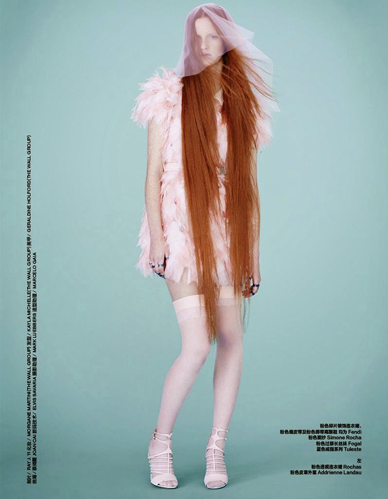 Magdalena Jasek stars in this Rapunzel editorial for Harper's Bazaar China. Gracing the Asian publication's February 2015 issue, the image series highlights feminine wardrobe staples and long haired looks that are dramatic and other-worldly. Titled 'Fifty Shades of Pink', Harper's Bazaar China's Rapunzel editorial is captured by Maurizio Bavutti.